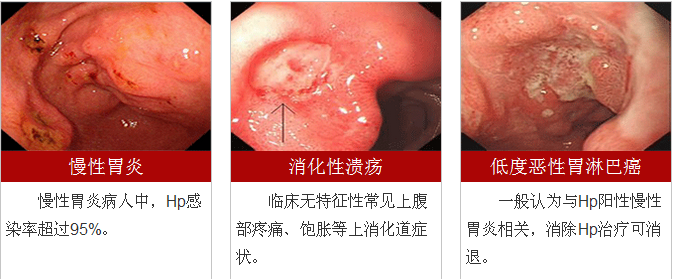感染Hp后大多数患者表现隐匿,无全身症状,临床上患者往往以慢性胃炎、消化性溃疡等表现就诊。